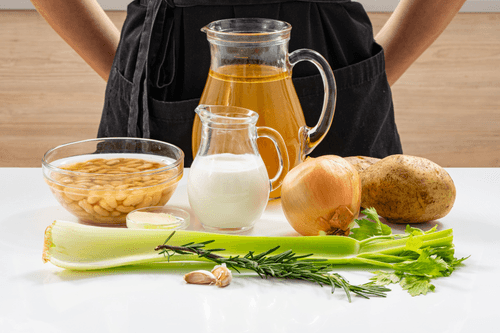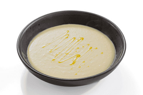 Белая фасоль — это довольно нежный ингредиент. Остальные компоненты лишь подчеркивают её мягкий вкус. Чтобы поднять блюдо на новый уровень и добавить немного изюминки, в суп было добавлено несколько капель ароматного трюфельного масла.