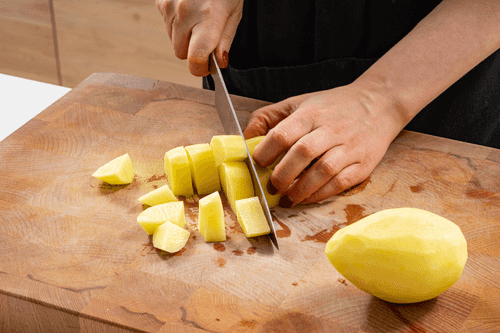 Картофель очистить и нарезать произвольно. Чем мельче нарезка, тем быстрее будет готов суп.