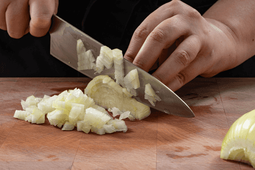 К мясу в казан добавить лук и жарить, помешивая, до прозрачности лука.