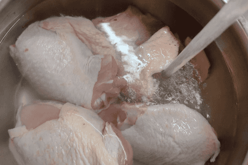 Куриные бедра залить водой, посолить и поставить варить бульон.