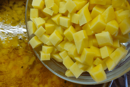 Туда же добавить нарезанный картофель, варить все до полной готовности.