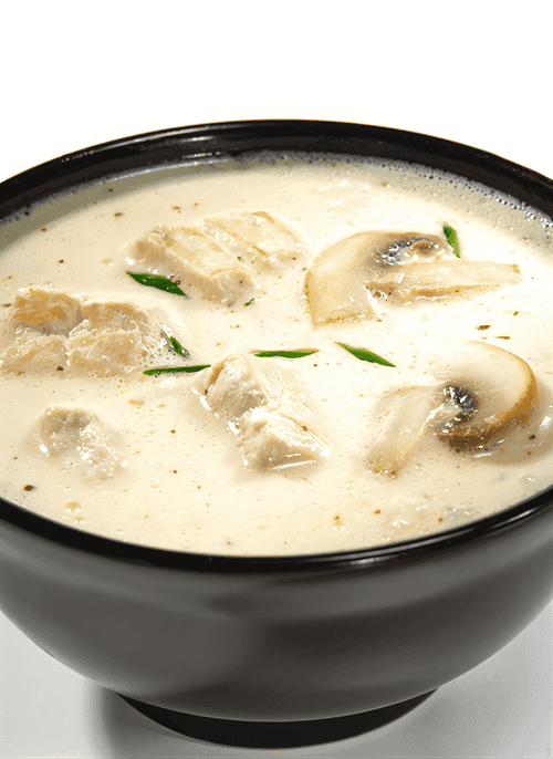 Острый суп с курицей, кокосовым молоком и корнем галангала — это классическое блюдо тайской кухни, которое покоряет своим экзотическим вкусом и насыщенными ароматами. История его создания уходит в традиции тайских кулинарных мастерских, где сочетаются свежие травы, пряности и кокосовое молоко. Галангал придаёт супу тонкие цитрусовые и имбирные нотки, а острый перец чили добавляет пикантности. Листья лайма и лимонная трава делают вкус освежающим, а рыбный соус усиливает глубину аромата. Суп обладает нежной кремовой текстурой благодаря кокосовому молоку и прекрасно сочетается с курицей и шампиньонами. Его подают горячим, украшенным свежей зеленью, создавая гармонию вкусов и яркие гастрономические впечатления. Это идеальный выбор для любителей азиатской кухни и пряных, ароматных блюд.