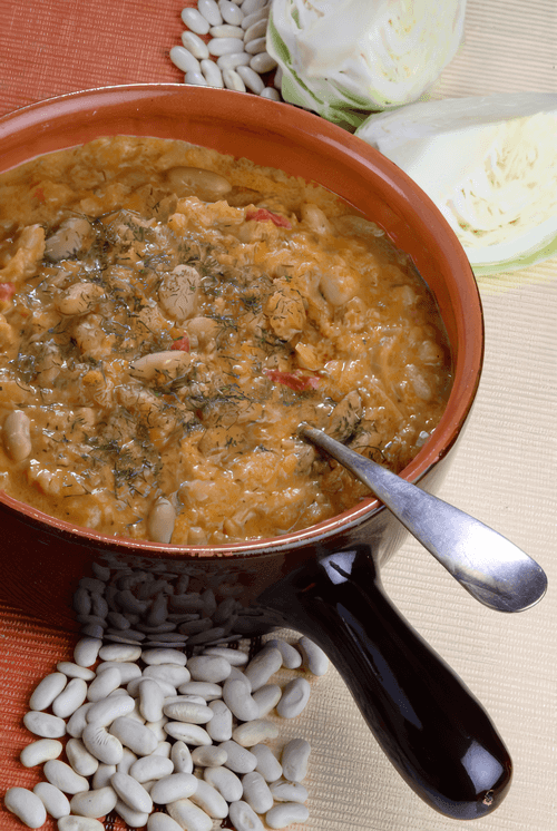 Щи с фасолью — это ароматное и насыщенное блюдо русской кухни, которое объединяет нежную кислинку квашеной капусты и мягкость фасоли. Этот суп, появившийся столетия назад, был любимым среди крестьян благодаря доступности ингредиентов и питательным свойствам. Фасоль добавляет глубину вкуса, а овощи, обжаренные в сливочном масле, придают мягкость и легкую сладость. Лавровый лист и черный перец дополняют богатую палитру, а сметана при подаче вносит нежный контраст. Щи особенно хороши после настаивания, когда вкусы полностью раскрываются. Их едят как повседневное блюдо и подают на семейных застольях, а густая текстура делает их отличным выбором для холодного времени года.