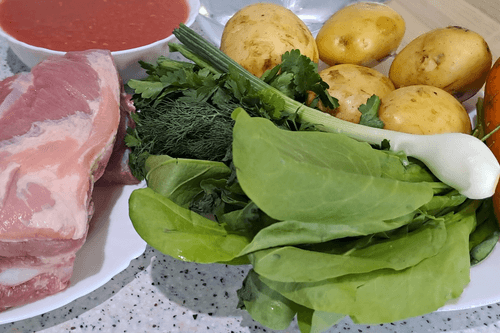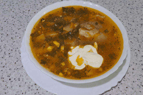 Зеленый борщ со свиными ребрами