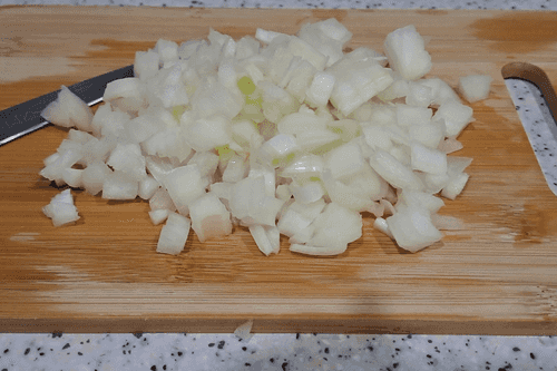 Очищенный лук мелко нарезать.