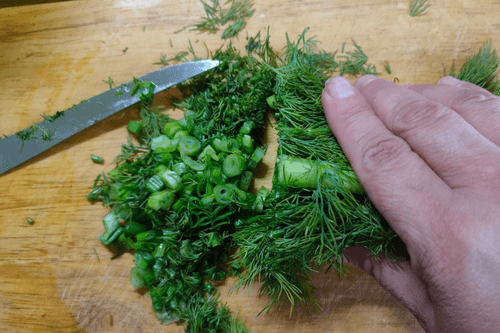 Лук и укроп помыть.