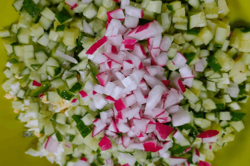 Добавить редис ко всем овощам.