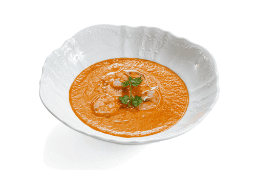 Свежий и запеченный сладкий перец — два разных продукта. Первый — островатый, яркий, но эта яркость быстро теряется. А после духовки у перца появляется совсем другой вкус — сладость, острота, аромат дымка, палитра гораздо шире. В этом рецепте пряность запеченного перца усилена терпкой зирой. В результате складывается жидкая версия марокканской перечной намазки мухаммары, которую сейчас модно подавать в ресторанах. Можно разлить этот суп в стаканы, дополнить льдом и тянуть через трубочку, как напиток или смузи. А можно, как в этом рецепте, разлить по суповым тарелкам и украсить креветками перед подачей.