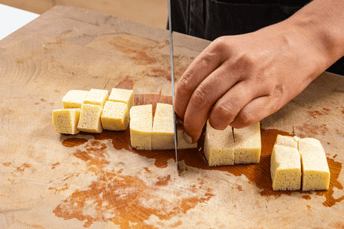 Тофу нарезать кубиками в 2 см.