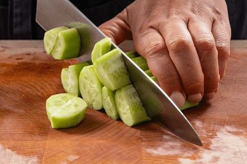 Огурцы очистить от кожуры, если семена некрупные, оставить их, нарезать произвольно.