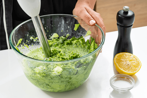 Измельчить суп блендером и добавить соль, перец и лимонный сок по вкусу. Убрать до подачи в холодильник.