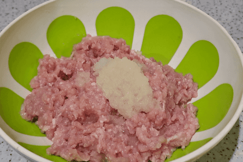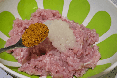 Выложить в миску с фаршем 1 чайную ложку смеси молотых перцев.