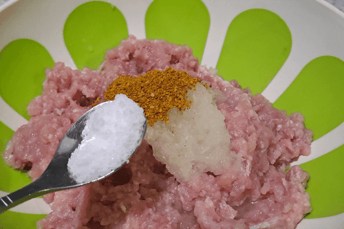 Добавить в фарш 1 чайную ложку соли. Все хорошо перемешать.