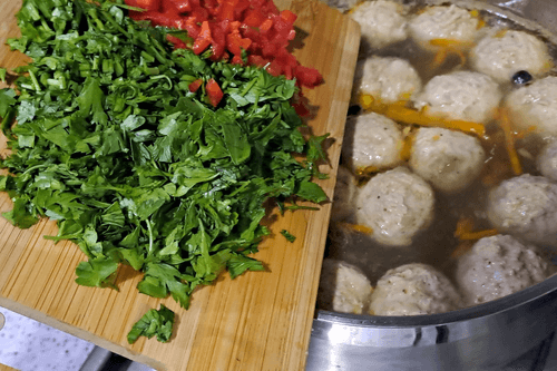 Суп с фрикадельками на мясном бульоне – это душевное и согревающее блюдо европейской кухни, история которого берет начало в домашних традициях простых и питательных обедов. Нежные фрикадельки из свинины, пропитанные ароматом специй, варятся в насыщенном мясном бульоне, создавая гармонию вкусов. Картофель придает блюду сытность, а морковь – легкую сладость. Завершающий аккорд – свежая петрушка и болгарский перец, добавляющие супу яркие краски и аромат. Это блюдо идеально подходит для семейных обедов, согревая в холодные дни и даря уют. Оно прекрасно сочетается со свежим хлебом и легкими салатами, создавая полноценный домашний ужин, который объединяет за столом близких.