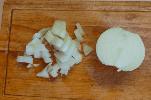 Лук нарезать кубиками.