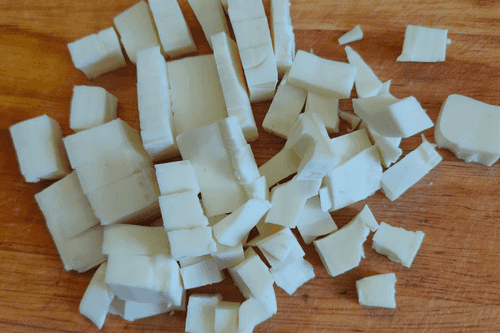 Нарезать кубиками.
