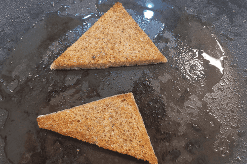 Гренки поджарить на той же сковороде 1–2 минуты с каждой стороны.
