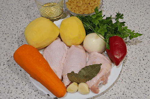 Куриный суп с болгарским перцем и петрушкой — это уютное и ароматное блюдо европейской кухни, наполненное насыщенными вкусами овощей и нежного куриного мяса. Его корни уходят в домашнюю кухню, где простые ингредиенты превращаются в согревающий и питательный суп. Легкая сладость болгарского перца в сочетании с ароматом лаврового листа и свежестью петрушки делает этот суп особенно приятным. Картофель и макароны добавляют сытности, а жареные овощи придают блюду глубину вкуса. Идеален для прохладного вечера, когда хочется чего-то нежного и утешающего. Подается горячим, чтобы раскрыть все его ароматы.