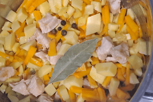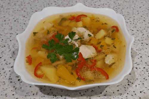 Куриный суп с тыквой и сладким перцем – это нежное, согревающее блюдо, вдохновленное европейской кухней. Его корни уходят в традиционные рецепты деревенской кухни, где использовали сезонные овощи и доступное мясо для создания питательных супов. Гармоничное сочетание сладкой тыквы и сочного болгарского перца придает супу яркий, насыщенный вкус с легкой сладостью. Курятина делает его сытным, а душистые специи добавляют глубину аромата. Этот суп идеально подходит для прохладных вечеров, когда хочется уюта и тепла. Он хорошо сочетается с свежим хлебом и зеленью, а также может служить отличным легким ужином или первым блюдом для праздничного застолья. Простота приготовления и богатство вкусов делают его любимым выбором для семейных обедов и дружеских встреч.