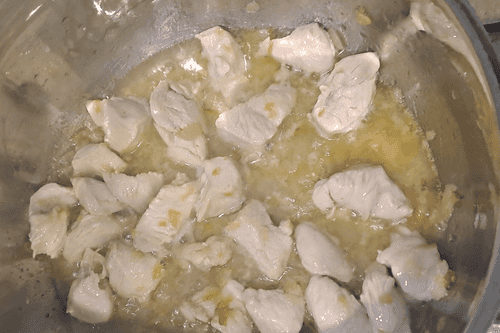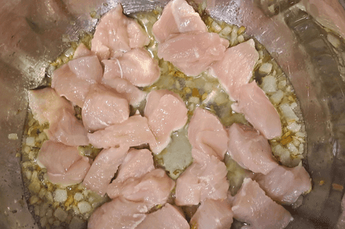 Мясо хорошо вымыть, немного просушить, нарезать порционными кусками, выложить в кастрюлю к луку.