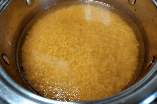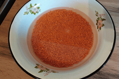 Соединить чечевицу и лук с кокосовым молоком. Измельчить блендером до однородной кремовой массы.