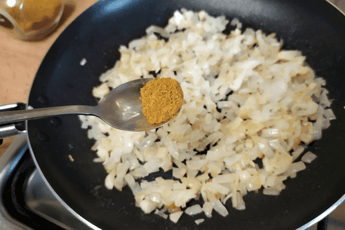 Обжарить на растительном масле лук, чеснок и имбирь до момента, пока лук станет прозрачным.