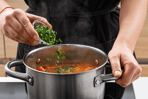 В самом конце добавить в суп мелконарезанную петрушку, снять его с огня и дать постоять 10–15 минут.