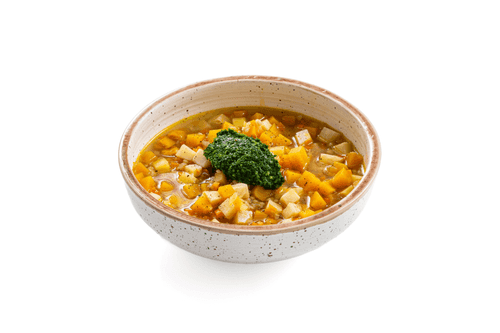 Постный гречневый суп – это согревающий и питательный блюдо русской кухни, уходящее корнями в старинные традиции постного питания. Простые, но ароматные ингредиенты раскрывают вкус гречки, придавая супу мягкость и глубину. Лук и морковь создают базу с легкой сладостью, сельдерей добавляет тонкие травяные нотки, а тыква привносит нежную кремовую текстуру. Особая изюминка – пикантный зеленый соус с чили, кинзой и чесноком, который обогащает блюдо свежестью и пряностью. Такой суп идеально подходит для легкого обеда или ужина, особенно в прохладную погоду, когда хочется теплого и уютного блюда. Благодаря натуральным ингредиентам, он легко усваивается и питает организм энергией без лишней тяжести. Прекрасный выбор для тех, кто ценит простые, но глубокие вкусы русской кухни.
