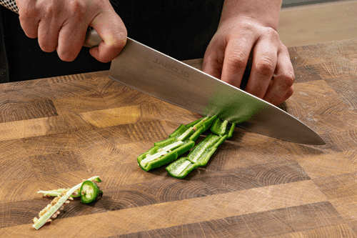 Для зеленого соуса крупно нарезать зеленый чили. Убрать семена или оставить их, если хочется добавить остроты.