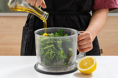 Выложить в чашу блендера чили, кинзу, петрушку и чеснок, добавить лимонный сок и оливковое масло. Пробить до однородного густого соуса. Добавить соль и перец по вкусу.