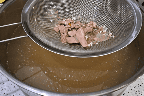 Выложить в кастрюлю подготовленное копченое сало.