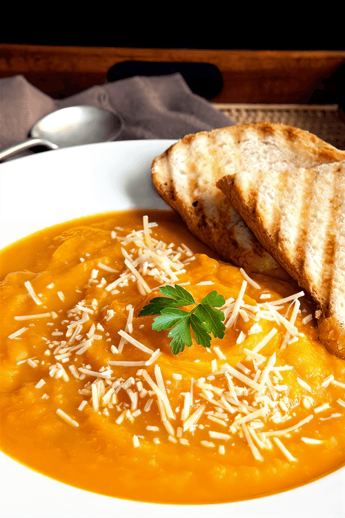 Тыквенный суп с пармезаном и корицей – это уютное осеннее блюдо, которое согревает душу и радует вкусовые рецепторы. Его корни уходят в американскую кухню, где тыква занимает важное место в сезонных рецептах. Нежное тыквенное пюре, обогащенное сливочным маслом и куриным бульоном, приобретает насыщенный бархатистый вкус. Добавление корицы придаёт супу теплые пряные ноты, а сахар подчеркивает естественную сладость тыквы. Завершающим штрихом становится тертый пармезан – он добавляет солёно-сливочный оттенок и делает текстуру более насыщенной. Этот суп идеально подходит для прохладных вечеров, его можно подавать как самостоятельное блюдо или в качестве изысканной закуски перед основным приёмом пищи. Ароматная пряность и кремовая консистенция делают его любимым осенним рецептом многих гурманов.