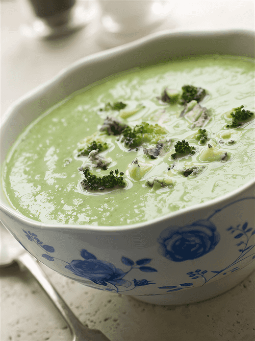 Крем-суп из брокколи и голубого сыра – утонченное блюдо французской кухни, покоряющее гармоничным сочетанием нежности и насыщенного вкуса. Исторически супы-пюре возникли в Европе как символ утонченности и благородства, а французская гастрономия мастерски использует сливочные текстуры. Этот суп объединяет мягкость брокколи и пикантность голубого сыра, создавая насыщенный, бархатистый вкус с тонкой солоноватой ноткой. Он идеален для холодных вечеров, согревая и даря удовольствие от каждого глотка. Подача со сливками и кусочками голубого сыра подчеркивает его изысканность, а легкая кремовая консистенция делает его прекрасным выбором как для уютного семейного ужина, так и для изысканного ресторанного блюда.