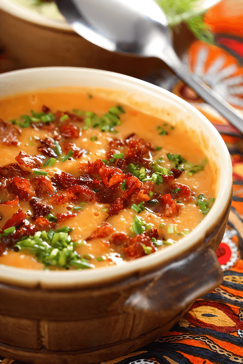 Суп из тыквы баттернат и бекона — это уютное и согревающее блюдо с насыщенным вкусом. Его корни уходят в американскую кухню, где тыква часто используется в осенних и зимних рецептах. Нежная, сладковатая мякоть баттернат-сквош прекрасно сочетается с пикантным, хрустящим беконом, создавая баланс вкусов. Легкий аромат чеснока и тмина добавляет глубину, а ложка йогурта при подаче дарит кремовую свежесть. Этот суп отлично подходит как для семейного ужина, так и для уютного вечера с чашкой теплого наслаждения. Его можно подать с поджаренным хлебом или гренками для дополнительной текстуры. Прост в приготовлении, но богат на впечатления, он приносит в дом атмосферу уюта и тепла.