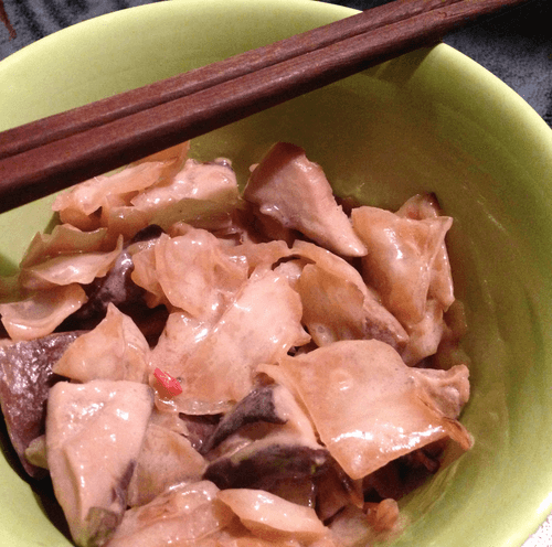 Капуста, жаренная в воке с грибами, рыбным соусом и кокосовым молоком