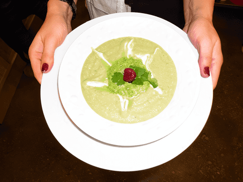 Холодный суп из авокадо с приправой из кинзы