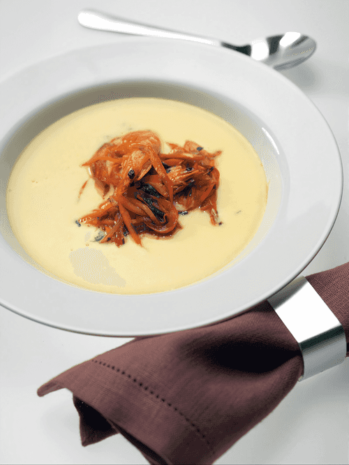Крем-суп с кинзой и креветками — это восхитительное сочетание нежности и ярких ароматов. Его корни можно найти в европейской кухне, где мастерство кулинаров создает гармоничные вкусы. Кокосовое молоко и сливки придают супу бархатистую текстуру, а кинза вносит освежающую пряность. Креветки, обжаренные с медом и соевым соусом, становятся нежными и слегка карамелизированными, дополняя композицию пикантными нотами. Овощи, пропитанные кунжутным маслом, добавляют легкую сладость и глубину вкуса. Этот суп идеально подходит как для уютного домашнего ужина, так и для изысканного обеда. Подавая его с креветками в центре тарелки, можно насладиться элегантной презентацией и насыщенным вкусом, который оставляет приятное послевкусие.