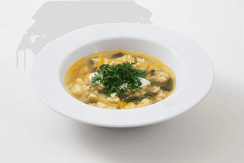Щавелевый суп — яркий представитель русской кухни, известный своей приятной кислинкой и насыщенным ароматом. Традиционно его готовят весной, когда свежий щавель начинает появляться на рынках. Этот суп легко освежает, придает бодрость и насыщает. Нежное сочетание куриного бульона, картофеля и пассерованных овощей приобретает особую глубину благодаря щавелю, который наполняет суп легкой кислинкой. Добавление взбитых яиц делает текстуру супа бархатистой, а зелень придает свежесть. Подается со сметаной, что делает вкус еще более мягким и насыщенным. Щавелевый суп — отличное блюдо для легкого обеда или ужина, пробуждающее воспоминания о домашних семейных трапезах.