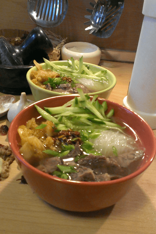 Острый суп кукси с кимчи