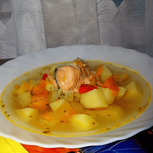 Суп с лососем и болгарским перцем
