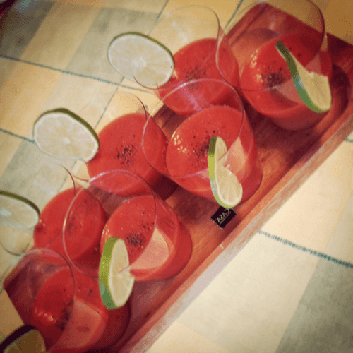 Разлить по стаканчикам, украсить лаймом, поставить в холодильник.