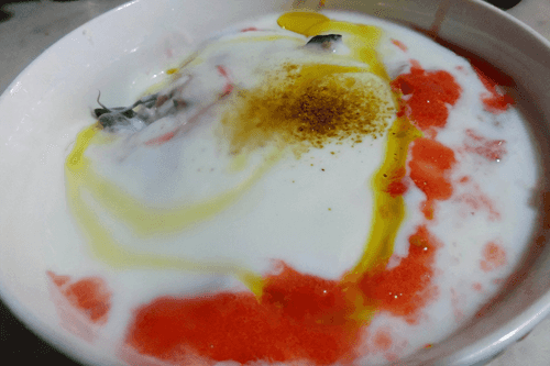 Добавить помидорную массу. Слегка перемешать. Добавить хорошего оливкового масла и зиру.