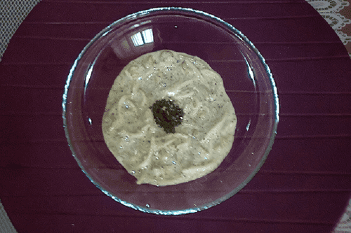 Разлить суп по тарелкам и добавить песто с кешью и сушеным базиликом (на 1 поварешку супа 2 столовые ложки соуса).