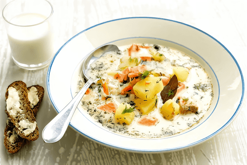 Традиционный финский сливочный суп с лососем (lohikeitto)