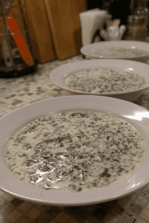 Довга с зеленью и нутом — это грузинский кисломолочный суп, который сочетает в себе свежесть зелени, нежность нутового горошка и легкую пряность зиры. История блюда восходит к древним временам, когда пастухи готовили питательные и освежающие блюда на основе простокваши. Вкус довги – нежный, кисловатый, с тонкими ореховыми нотами благодаря нуту и зире. Простокваша придает блюду легкость, а свежая зелень — ароматное богатство. Этот суп идеален в жаркую погоду, так как его можно подавать охлажденным, но также согревает в прохладные дни. Он подходит как самостоятельное блюдо, так и дополнение к традиционным грузинским лепешкам. Довга — это не просто суп, а часть культуры, способ насладиться натуральными ингредиентами и гармонией вкусов.