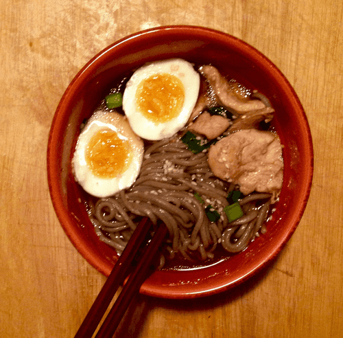 Простой японский суп с гречневой лапшой