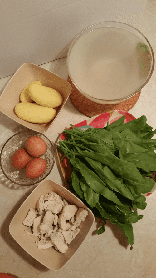 Зеленый борщ с куриной грудкой