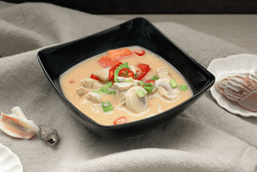 Том Кха Кай – это экзотический суп, пришедший из тайской кухни, известный своим ярким и гармоничным вкусом. Нежное куриное филе, шампиньоны и ароматные травы создают насыщенный и глубоко пряный аромат, который усиливается благодаря кокосовому молоку, лемонграссу и листьям лайма. Суп обладает тонким балансом между сладостью, кислинкой и легкой остротой, создавая настоящее гастрономическое удовольствие. Том Кха Кай не только согревает, но и освежает благодаря сочетанию цитрусовых нот и острого перца чили. Его часто подают как самостоятельное блюдо или в сопровождении риса, чтобы подчеркнуть его насыщенные вкусовые оттенки. Этот суп символизирует искусство тайской кухни – утонченное сочетание свежих ингредиентов и богатства ароматов, доставляющее истинное наслаждение каждому, кто его попробует.