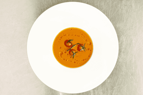 Суп из печеных помидоров — это настоящий гимн летнему урожаю и русской гастрономии. Сливовидные помидоры, запеченные до карамельной сладости, придают блюду насыщенный, глубокий вкус с легкой дымной ноткой. Базилик и тимьян подчеркивают свежесть, а соус барбекю добавляет пикантности. Бархатистая консистенция супа делает его утонченным и нежным, а обжаренные гроздья черри — изысканным украшением. Этот суп идеально подходит как для уютного семейного ужина, так и для элегантного обеда. Согревающий, ароматный, полный летних оттенков — он напоминает о неспешных вечерах, наполненных солнцем и ароматами свежих трав. Подавайте его теплым, наслаждаясь гармонией вкусов, рожденной в жарком сердце духовки.