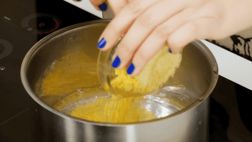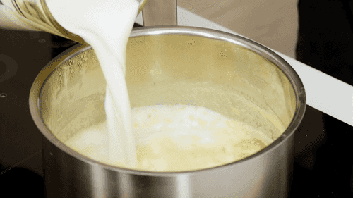 Затем влить горячее молоко и довести до готовности.